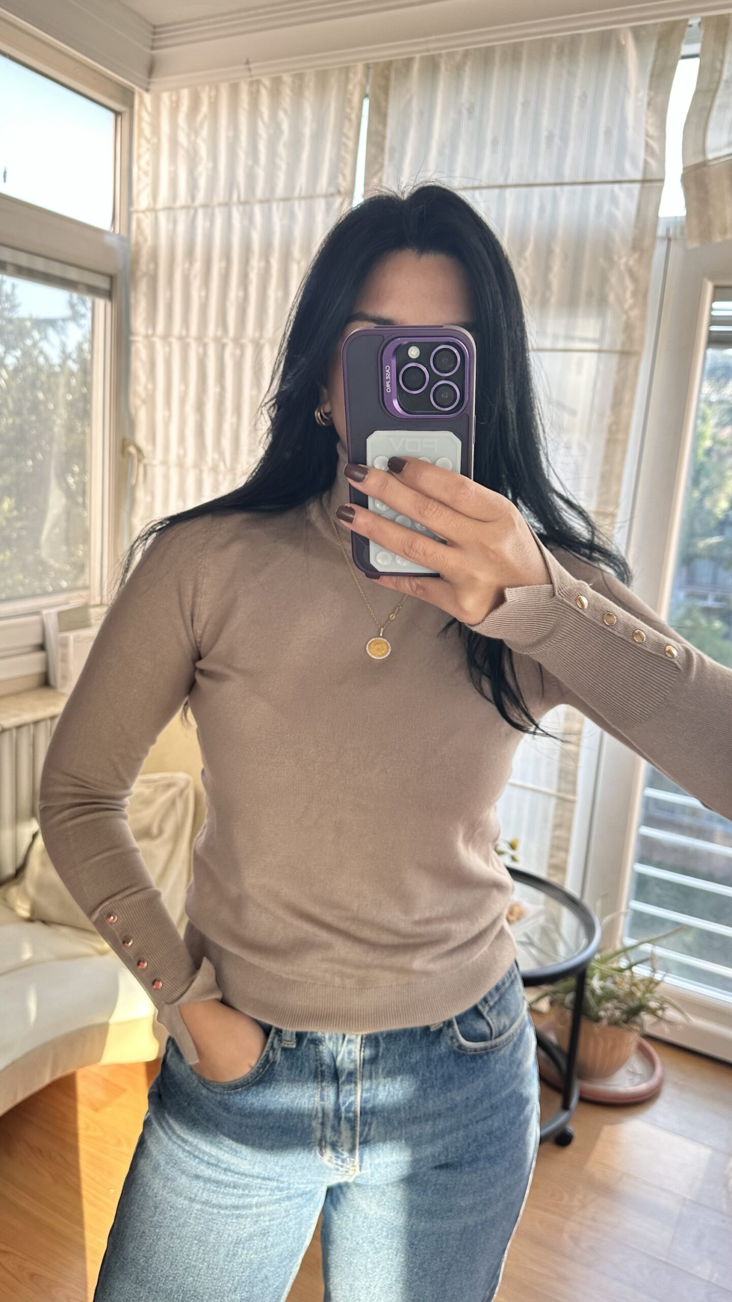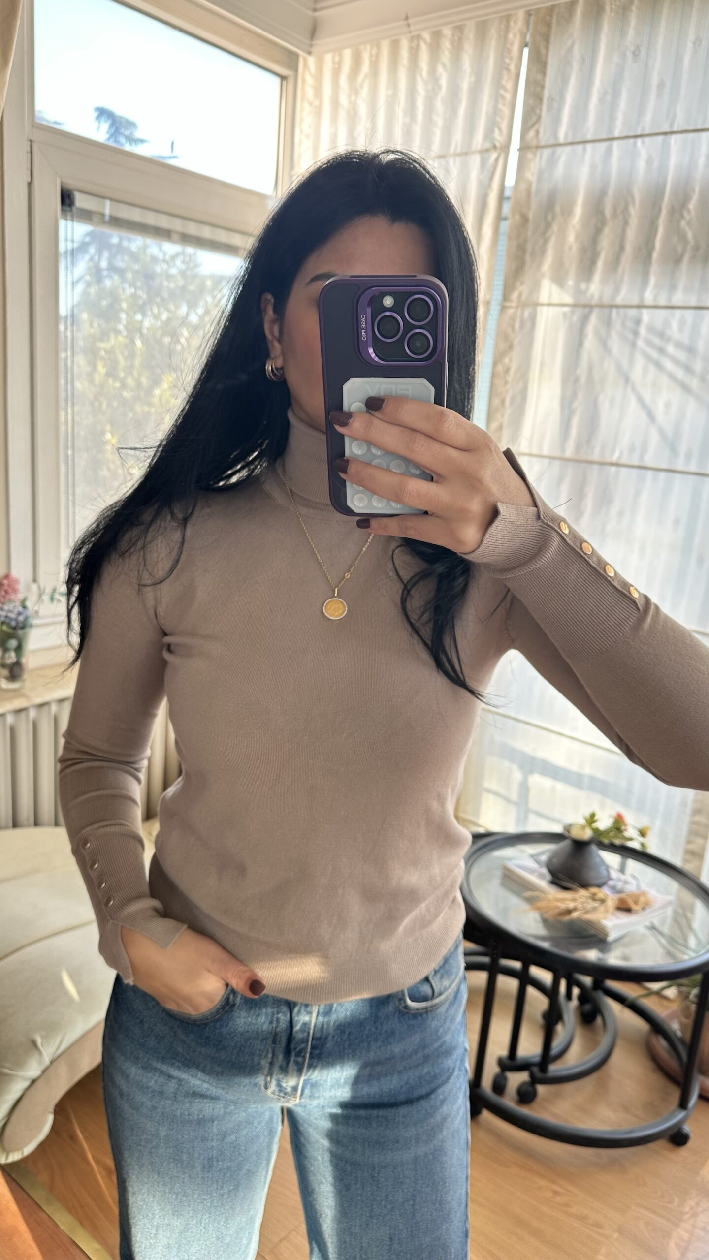 Upgrade your winter wardrobe with our ultra-soft Button-Sleeve Turtleneck, the perfect blend of comfort, elegance, and everyday chic.
