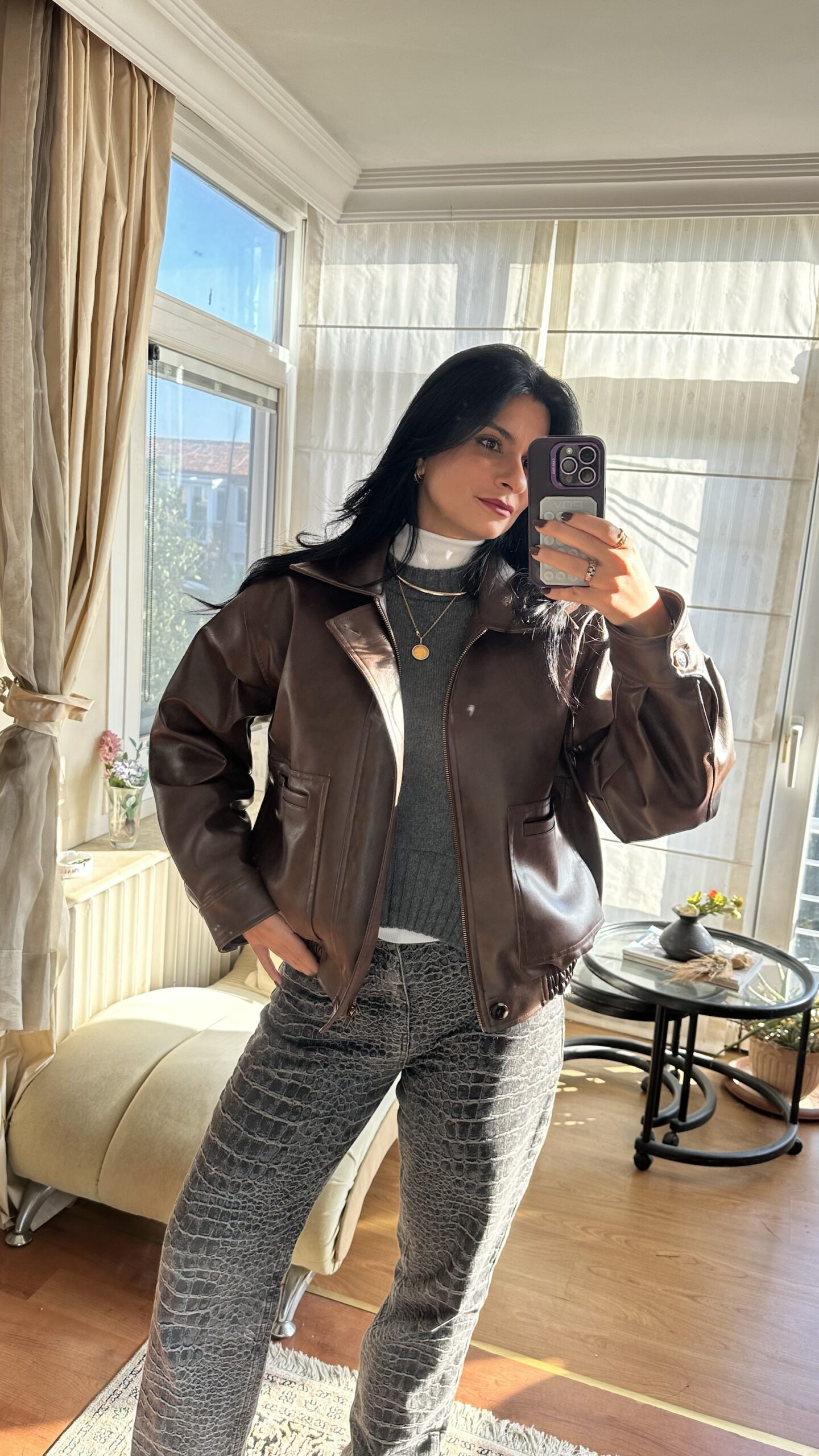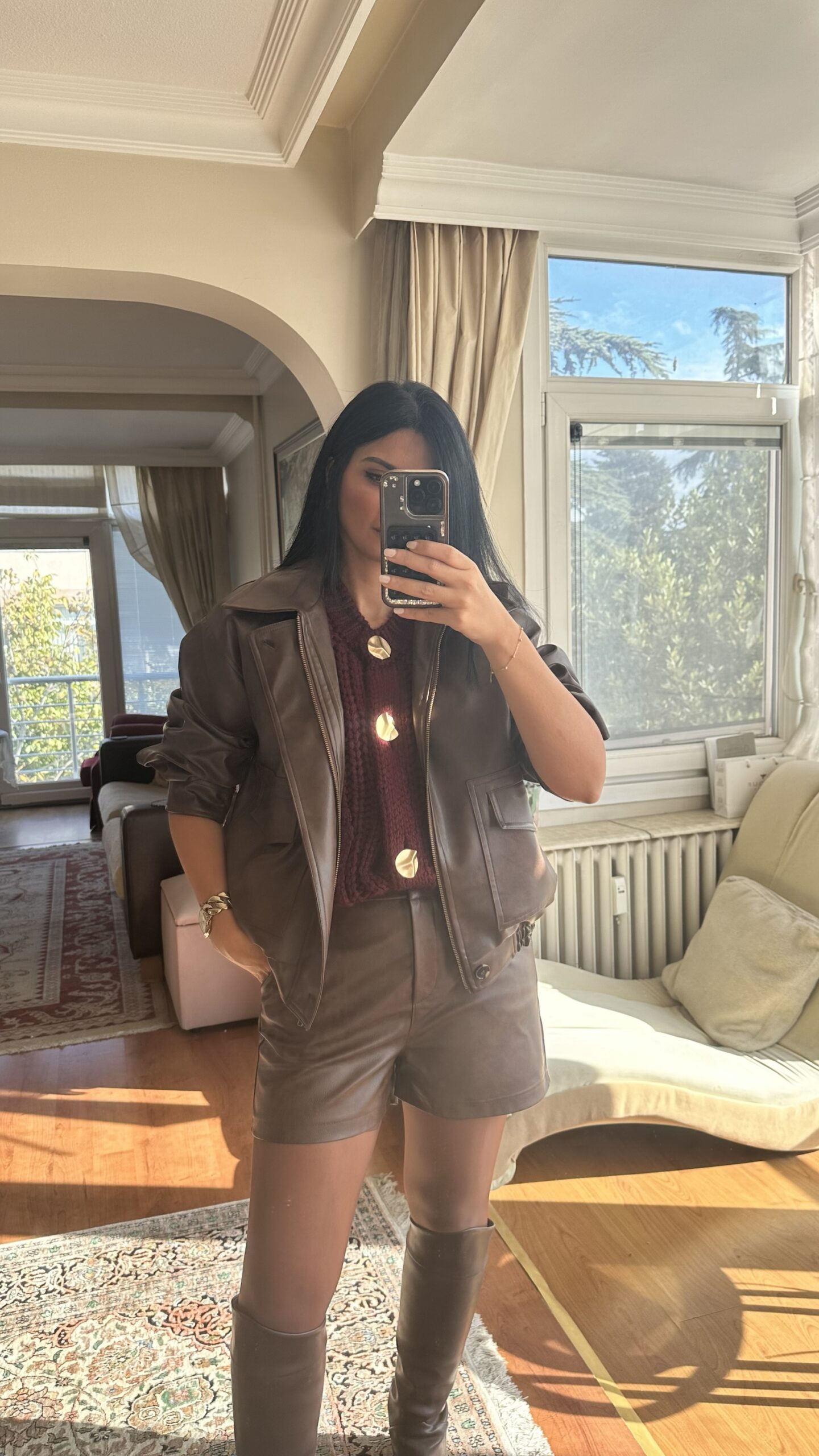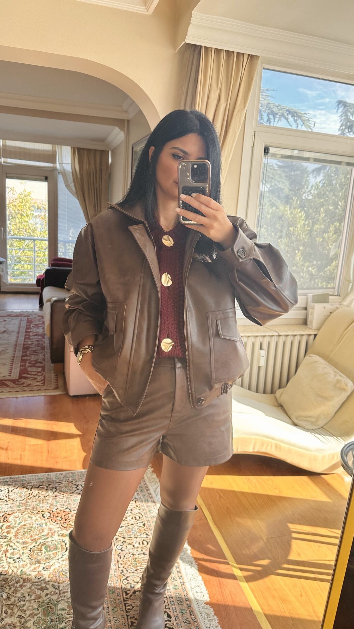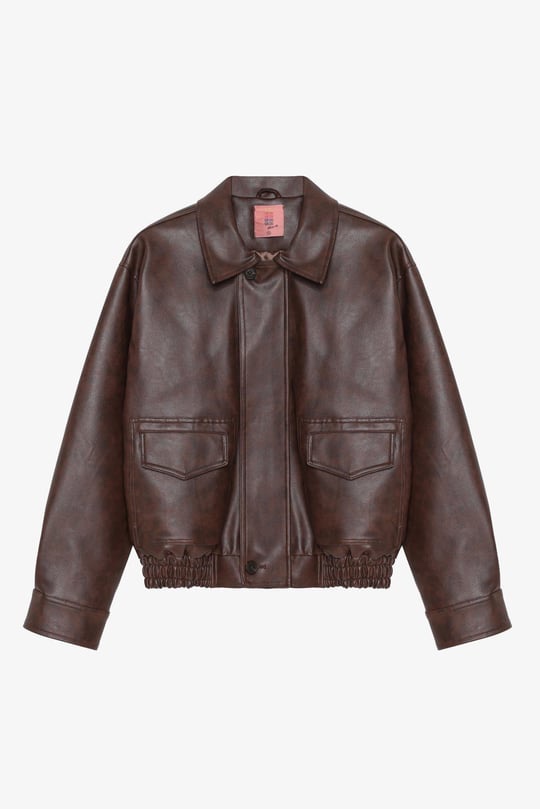 This faux leather set combines bold edges with a luxe finish — perfect for crisp mornings or stylish evenings.