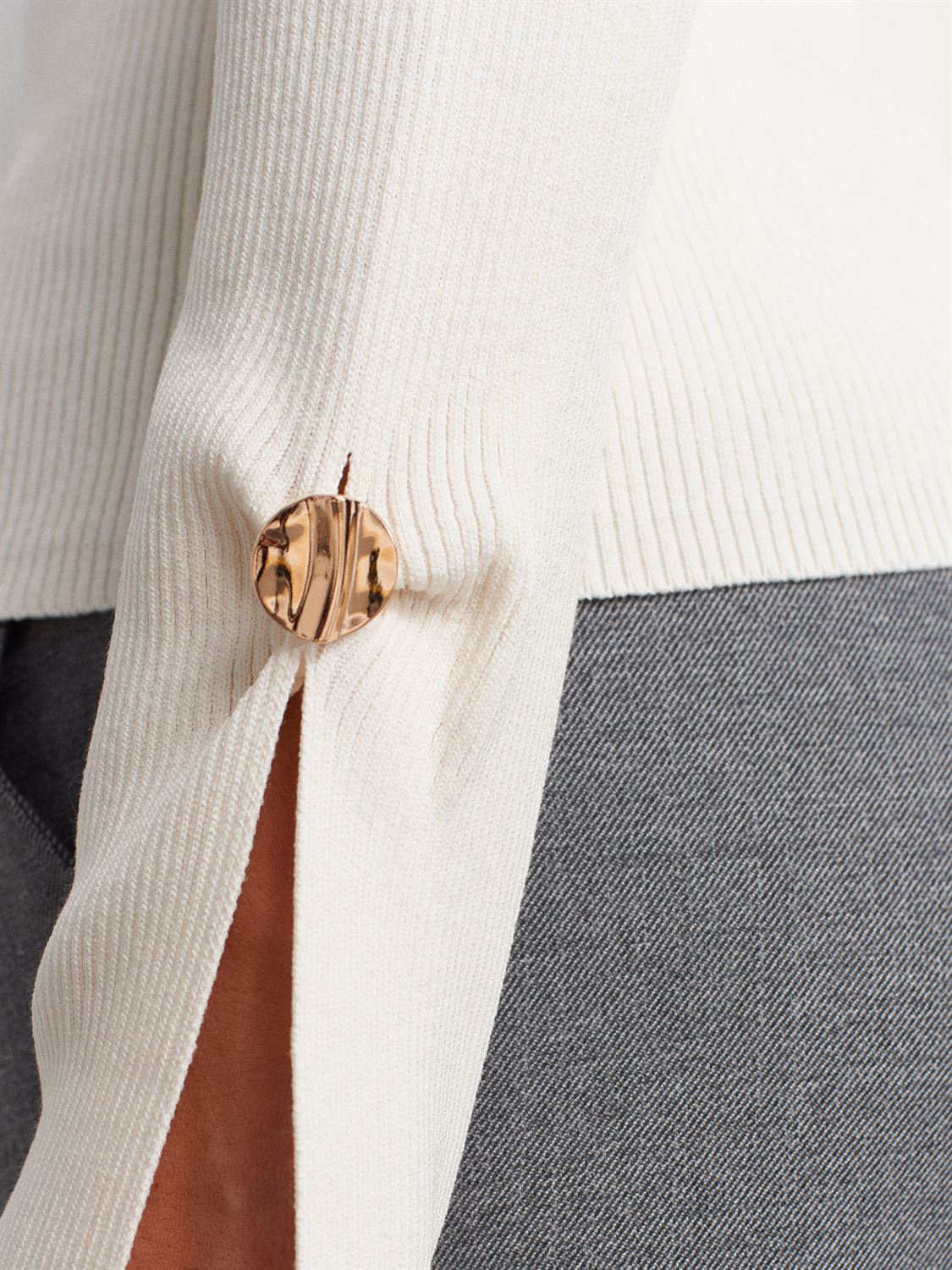 • Gold-button split sleeves