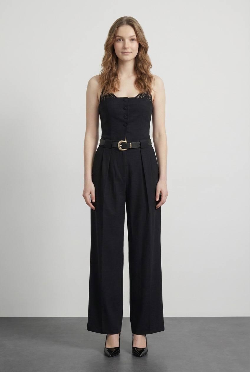 The high waist and structured pleats define your shape while the wide-leg cut creates length and flow.