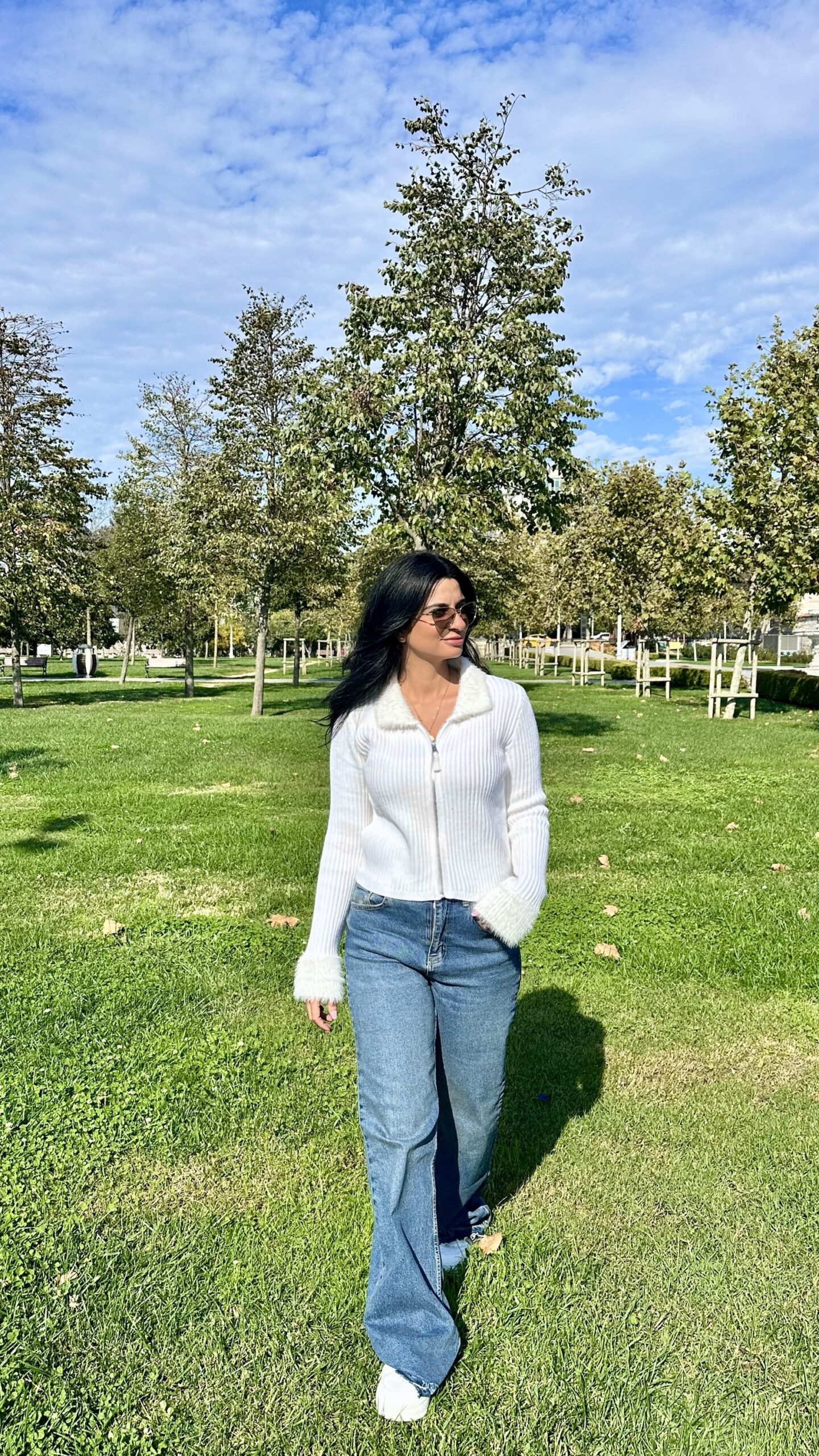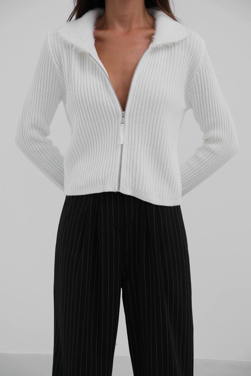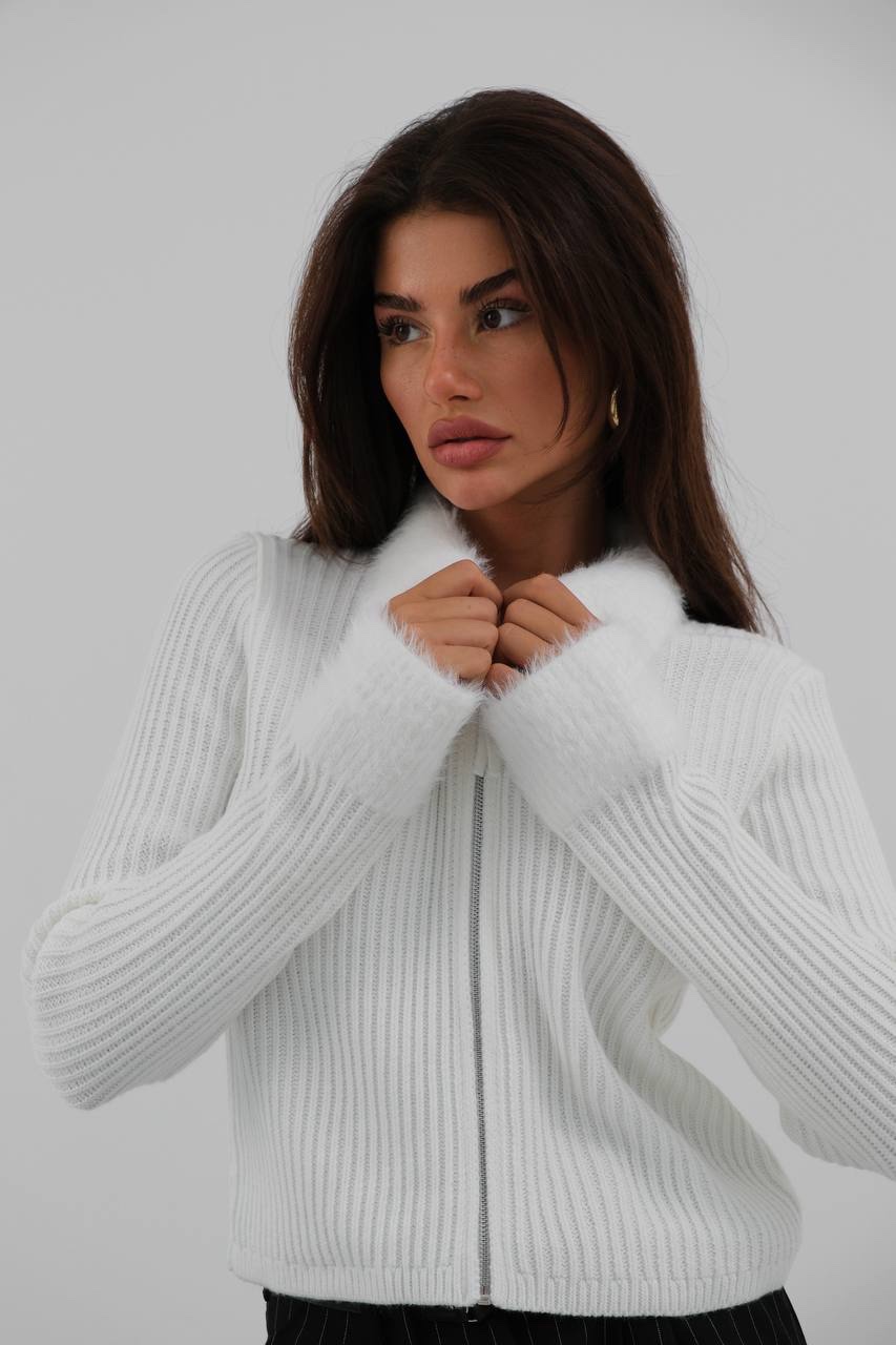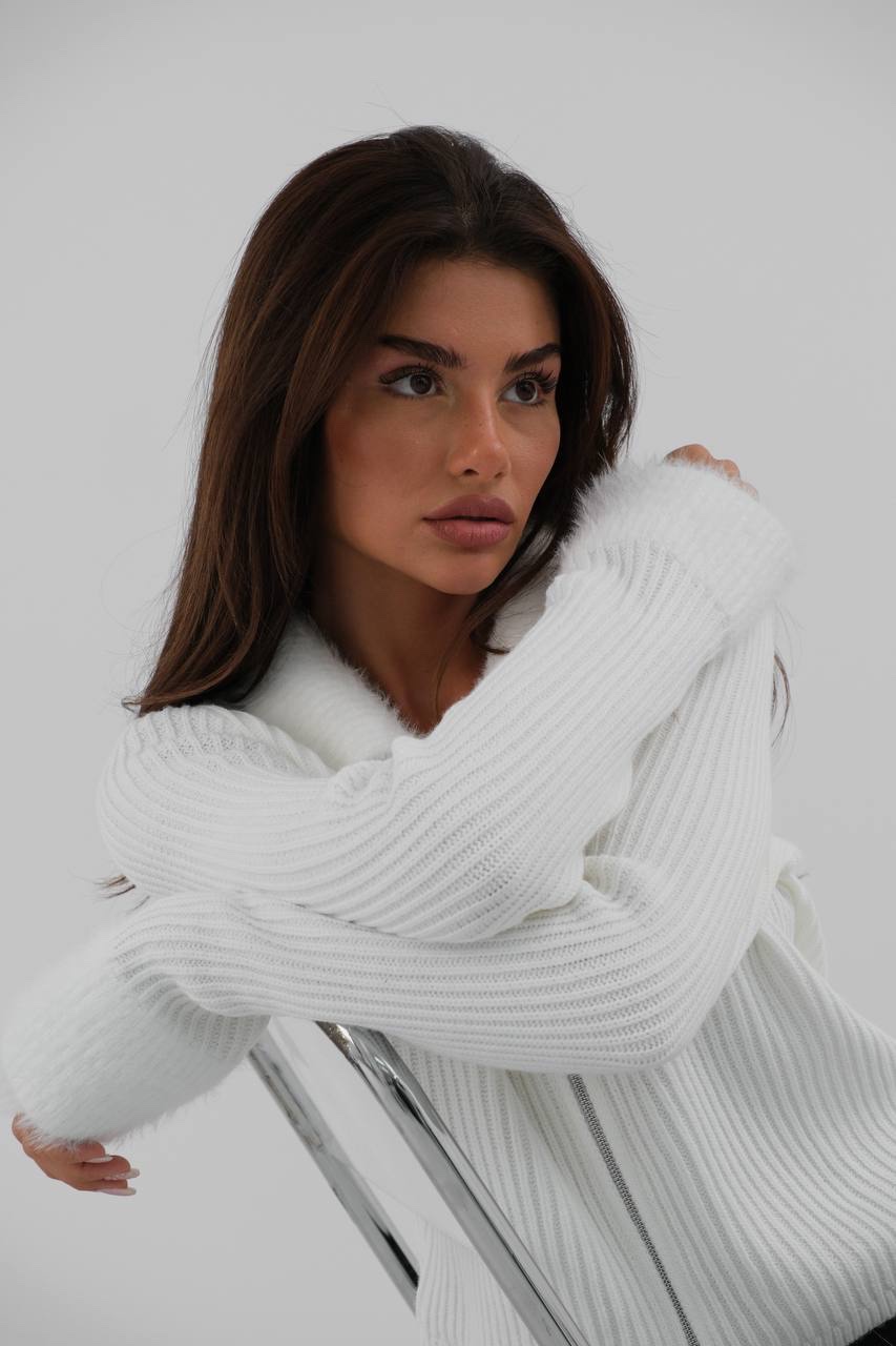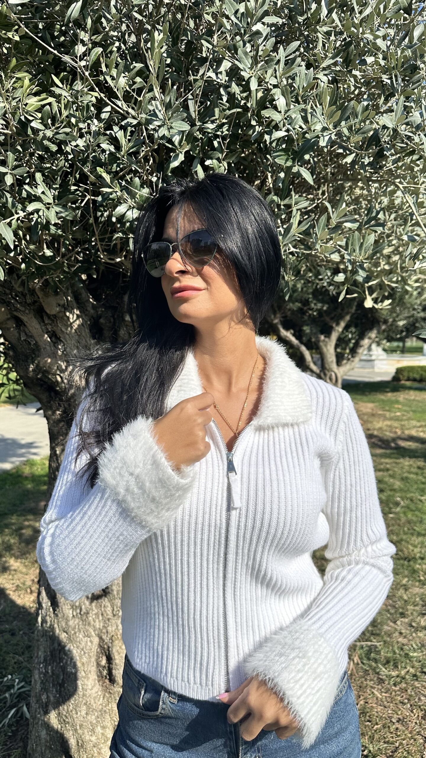 Designed with a modern zippered front, this piece offers both comfort and versatility. Its fitted silhouette and soft knit fabric make it perfect for layering or as a standalone statement piece. Whether you’re jet-setting or enjoying an evening out, this chic cardigan is your go-to for effortless style.